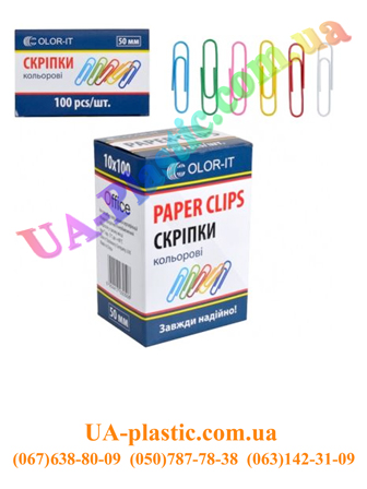 26667 скріпка кольорова 50мм 100шт